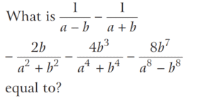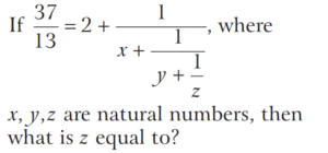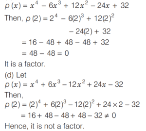 BASIC OPERATION AND FACTORISATION (CDS)Total Questions: 7761. Which one of the following is correct? [2015 (II) Evening Shift](a)(b)(c)(d)Correct Answer: (c)Solution: 62. Solve the following equation [2015 (II) Evening Shift](a)(b)(c)(d)Correct Answer: (a)Solution:63. Solve the following equation [2015 (I) Morning Shift ](a) 1(b) 2(c) 3(d) Cannot be determined due to insufficient dataCorrect Answer: (d) Cannot be determined due to insufficient dataSolution: 64. For what value of k is (x - 5) a factor of x³ - 3x² + kx - 10 ? [2015 (I) Morning Shift ](a) -8(b) 4(c) 2(d) 1Correct Answer: (a) -8Solution:65. The expression x³q² - x³ pt + 4x²pt - 4xq² + 3xq² - 3xpt is divisible by [2015 (I) Morning Shift ](a) Only (x - 1)(b) Only (x - 3)(c) Both (x - 1) and (x - 3)(c) Both (x - 1) and (x - 3)Correct Answer: (c) Both (x - 1) and (x - 3)Solution:66. If x + y + z = 0, then x³ + y³ + z³ -3xyz is equal to [2015 (I) Morning Shift ](a) 0(b) 6xyz(c) 12xyz(d) xyzCorrect Answer: (a) 0Solution:67. If a - b = 4 and a² + b² = 40 where a and b are positive integers, then a³ + b⁶ is equal to [2015 (I) Morning Shift ](a) 264(b) 280(c) 300(d) 324Correct Answer: (b) 280Solution: 68. If (x + k) is the common factor of x² + ax + b and x² + cx + d then what is k equal to? [2014 (II) Evening Shift](a) (d - b) / (c - a)(b) (d - b) / (a - c)(c) (d + b) / (c + a)(d) (d - b) / (c + a)Correct Answer: (a) (d - b) / (c - a)Solution:69. What is the remainder when x⁵ - 5x² + 125 is divided by (x + 5) ? [2014 (II) Evening Shift](a) 0(b) 125(c) - 3125(d) 3125Correct Answer: (c) - 3125Solution:70. Solve the following equation [2014 (II) Evening Shift](a) a + b(b) a - b(c) 1(d) 0Correct Answer: (d) 0Solution: Submit Quiz« Previous12345678Next »