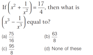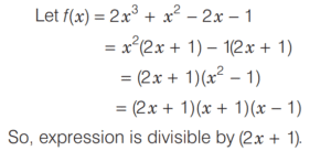 BASIC OPERATION AND FACTORISATION (CDS)Total Questions: 7771. If ax + by - 2 = 0 and axby = 1, where a ≠ 0, b ≠ 0 , then what is (a²x + b²y) equal to? [2014 (II) Evening Shift](a) a + b(b) 2ab(c) a³ + b³(d) a⁴+ b⁴Correct Answer: (a) a + bSolution:72. Consider the following statements [2014 (II) Evening Shift]1. (a - b - c) is one of the factor of 3abc + b³ + c³ - a³ 2. (b + c - 1) is one of the factors of 3bc + b³ + c³ - 1.Which of the above statement(s) is/are correct?(a) Only 1(b) Only 2(c) Both 1 and 2(d) Neither 1 nor 2Correct Answer: (c) Both 1 and 2Solution:73. x³ + 6x² + 11x + 6 is divisible by [2014 (I) Morning Shift ](a) Only (x + 1)(b) Only (x + 2)(c) Only (x + 3)(d) All of the aboveCorrect Answer: (d) All of the aboveSolution:74. What should be added to x(x + a) (x + 2a) (x + 3a) so that the sum must be a perfect square? [2014 (I) Morning Shift ](a) 9a²(b) 4a²(c) a⁴(d) None of the aboveCorrect Answer: (c) a⁴Solution: 75. If 3x⁴ - 2x³ + 3x² - 2x + 3 is divided by (3x + 2) then the remainder is [2014 (I) Morning Shift ](a) 0(b) 185/27(c) 181/25(d) 3/4Correct Answer: (b) 185/27Solution:76. The expression 2x³ + x² - 2x - 1 is divisible by [2014 (I) Morning Shift ](a) x + 2(b) 2x + 1(c) x - 2(d) 2x - 1Correct Answer: (b) 2x + 1Solution:77. Solve the following equation [2014 (I) Morning Shift ](a)(b)(c)(d)Correct Answer: (b)Solution: Submit Quiz« Previous12345678