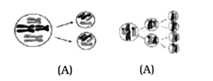 10. Two types of cell divisions A and B are shown in the figure below. Which option provides the correct answer for [RRB Group 'D' CBT Exam, 22.08.2022 (Shift-I)]