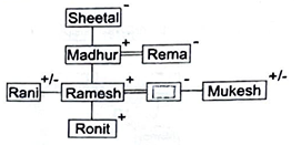 Blood Relation (Variety Questions) Total Questions: 2311. Mukesh's sister is the wife of Ramesh, Ramesh is Rani's only brother. Ramesh's father is Madhur. Sheetal is Ramesh's paternal grandmother. Rema is Sheetal's daughter-in-law. Ronit is Rani's brother's son. How is Ronit related to Mukesh? [S.S.C CHSL 15/03/2023 (3rd Shift)](a) Son(b) Brother(c) Brother-in-law(d) NephewCorrect Answer: (d) NephewSolution:Ronit is nephew of Mukesh12. Aman is the brother of Baman and Chaman. Baman is Emily's mother. Farhan is Aman's father then which of the following is definitely true? [S.S.C CHSL 13/03/2023 (2nd Shift)](a) Aman and Emily are siblings.(b) Chaman is male(c) Chaman is brother of Aman(d) Baman is sister of chaman.Correct Answer: (d) Baman is sister of chaman.Solution:(d) Baman is the sister of chaman.13. A + B means 'A is the father of B' [S.S.C CGL 03/12/2022 (3rd Shift)]A * B means 'A is the sister of B'A % B means 'A is the daughter of B'A $ B means 'A is the son of B'If L % M + N * O $ P, then how is L related to P?(a) Sister(b) Daughter(c) Mother(d) mother-in-lawCorrect Answer: (d) mother-in-lawSolution:Hence, It is clear from the above figure that L is the daughter of P14. If A + B means that A is he father of B, A - B means that A is the mother of B, A × B means that A is the brother of B then which of the following expressions shows that Q is the son of P? [S.S.C CGL 01/12/2022 (3rd Shift)](a) P × P - Q(b) P + Q - R(c) P + R × Q(d) P - Q + RCorrect Answer: (d) P - Q + RSolution:Solving the expressions in all the options one by one.Hence, Q is the son of P.15. There are six children playing ludo, namely 1, 2, 3, 4, 5, and 6. 1 and 5 are brothers. 6 is the sister of 5. 3 is the only son of 1's father's brother. 2 and 4 are the daughters of the only brother of 3's father. How is 4 related to 1? [S.S.C CPO 10/11/2022 (Afternoon)](a) Sister(b) Uncle(c) Niece(d) CousinCorrect Answer: (a) SisterSolution:Hence, 4 is the Sister of 1.16. Priyansh, who is the only son of Rajat (male), says to Prakash, "Your mother, Veena is the elder sister of my father, the only son of Krishna ji". How is Rajat related to Prakash? [S.S.C CHSL 07/06/2022 (Afternoon)](a) Uncle(b) Cousin(c) Father(d) SonCorrect Answer: (a) UncleSolution:Rajat is the Maternal Uncle of Prakash.17. Pointing towards a man, Rahul said, His son's son is the father of my mother's daughter. How is that person related to Rahul? [S.S.C CHSL 30/05/2022 (Evening)](a) grandfather(b) brother of father's father(c) great-grandfather(d) father's brotherCorrect Answer: (c) great-grandfatherSolution:The person is Great Grandfather of Rahul.18. Pointing to a lady in a photograph, Vijay said, "Her sister's mother is the sister of my father's daughter." How is the lady related to Vijay? [S.S.C CHSL 25/05/2022 (Afternoon)](a) Mother(b) Sister's daughter(c) Daughter(d) SisterCorrect Answer: (b) Sister's daughterSolution:Lady is the Vijay's Sister's daughter,19. Jahnavi is the sister of Taruni. Taruni is married to Dilip. Dilip is the father of Raghu. Manoj is the son of Hema. Taruni is the mother-in-law of Hema. Dilip has only one son and no daughter. Jahnavi is married to Barun. Lekha is the daughter of Barun. How is Jahnavi's sister related to Manoj's paternal grandfather? [S.S.C CGL 18/4/2022 (Evening)](a) Sister(b) Wife(c) Mother-in-law(d) MotherCorrect Answer: (b) WifeSolution:Hence, Jahnvi's sister is the wife of Manoj's paternal grandfather20. Parmila is the granddaughter of Akun who is married to Nikita. Murali is the brother-in-law of Akun who has two daughters but no son. Rahul is the cousin of Kamal and brother of Parmila. Uday and Vanmay are the sons-in-law of Nikita. Vanmay is married to Yamini and they have two daughters and one son. Uday has one son and one daughter. Tina and Smita are the daughters of Yamini. Murali is unmarried. How is Yamini related to Rahul? [S.S.C CGL 11/04/2022 (Afternoon)](a) Aunt(b) Mother(c) Sister(d) DaughterCorrect Answer: (a) AuntSolution:Hence, Yamini is the aunt of Rahul.Submit Quiz« Previous123Next »