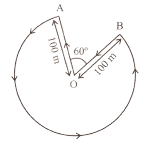 Here, radius AO = OB = 100m
