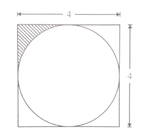 1. A circle is drawn inside a square of length 4 units as shown in the figure given above. What is the area of the shaded portion?