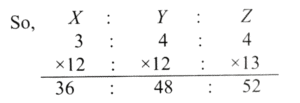 ∴ Ratio of X, Y and Z = (36/48) / 52 = (9/12) / 13