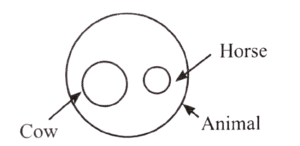 8. Which one among the following diagrams illustrates relationship among animals, cows and horses?