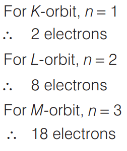 According to Bohr, the distribution of electrons into different orbits of an atom is given by 2n² , where, n is number of orbits.