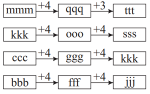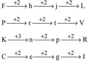 CLASSIFICATION (General Mental Ability) UPSC EPFO Part-2Total Questions: 2011. Finding the "odd one out" among four words(a) ABJNM(b) QRTUZ(c) IXYOQ(d) WFGOPCorrect Answer: (c) IXYOQSolution:Except in letter group IXYOQ in all others there is only one Vowel.12. Finding the "odd one out" among four words(a) AbcdE(b) IfghO(c) ApqrL(d) UlmnECorrect Answer: (c) ApqrLSolution:In the letter group IXYOQ, there are two Vowels. 62. (c) Except in A p q r L, in all other the first and the last letters given in Capital are Vowels.13. Finding the "odd one out" among four words(a) Man = 13114(b) Ram = 18113(c) Jug = 10217(d) Hub = 82110Correct Answer: (d) Hub = 82110Solution:14. Finding the "odd one out" among four words(a) FhjL(b) PrtV(c) KnpR(d) CeglCorrect Answer: (c) KnpRSolution:15. Finding the "odd one out" among four words(a) dcba(b) zyxw(c) srpq(d) hgfeCorrect Answer: (c) srpqSolution:16. Finding the "odd one out" among four words(a) mmm qqq ttt(b) kkk ooo sss(c) ccc ggg kkk(d) bbb fff jjjCorrect Answer: (a) mmm qqq tttSolution:17. Finding the "odd one out" among four words(a) SWYBE(b) HKNQT(c) QTWZC(d) CFILOCorrect Answer: (a) SWYBESolution:18. Finding the "odd one out" among four words(a) ECA(b) GIK(c) QOM(d) WUSCorrect Answer: (b) GIKSolution:In other options the gap between letters is equal.19. Finding the "odd one out" among four words(a) LNPR(b) HJLN(c) SUVX(d) BDFHCorrect Answer: (c) SUVXSolution:20. Finding the "odd one out" among four words(a) MT(b) CJ(c) SZ(d) FNCorrect Answer: (d) FNSolution:Submit Quiz« Previous12