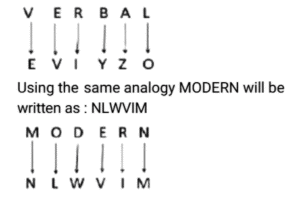 6. In certain code VERBAL is written as EVIYZO. How will MODERN be written as in that code? [RRB NTPC 10/01/2021 (Morning)]