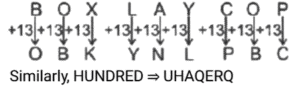 10. In a certain code language, BOX is written as OBK, LAY is written as YNL and COP is written as PBC. How will HUNDRED be written in that language ? [RRB NTPC 19/01/2021 (Morning)]