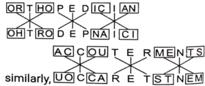 Coding Decoding – Railway Reasoning part – XITotal Questions: 501. What is the code for ‘animal’ in that code language ?In a certain code language, ‘Birdis animal’ is written as ‘# mr so’, ‘Parrot isBird’ is written as ‘so # @’, ‘is Parrotanimal’ is written as ‘mr @ #’.(a) @(b) so(c) mr(d) #Correct Answer: (c) mrSolution:Code for Bird = so Is = #, Animal = mr, Parrot = @2. In a certain code language ,‘VMBHL’ is written as ‘VQJTB’ . What is the code for ‘KTSPR’ in that code language? [RRB NTPC 21/03/2021 (Evening)](a) BYAAQ(b) BYBBQ(c) BYABR(d) BYBARCorrect Answer: (a) BYAAQSolution:3. In a certain code language, ELEPHANT is written as MTMBKSCJ and LEOPARD is written as TMVBKEN. How will PANTHER be written as in that language? [RRB NTPC 21/03/2021 (Evening)](a) BKCJSEM(b) BKJCSME(c) BKJSCME (d) BKCJSMECorrect Answer: (d) BKCJSMESolution:From the given examples wecan observe that code forP = B, A = K, N = C, T = J,H = S, E = M, R = ECode for PANTHER = BKCJSME4. In certain code language, ‘He is good boy’ is written as ‘no po ko lo’, ‘good for health’ is written as ‘po ro fo’ and ‘health is good’ is written as ‘fo ko po’. What should stand for ‘is’ in that language?’ [RRB NTPC 21/03/2021 (Evening)](a) ko(b) no(c) po(d) loCorrect Answer: (a) koSolution:Code for good = poIs = ko, Health = fo, For = ro, He = no / loBoy = no /lo5. In a code language, BEST is written as UTTSFECB. How will CHAIR be written as in that language? [RRB NTPC 27/03/2021 (Morning)](a) CDHIAIBJRS(b) SRJIBAIHDC(c) SRJIAIBJURS(d) CDHIBAURSCorrect Answer: (b) SRJIBAIHDCSolution:6. In a certain code, FACE is written as 6135 and DEAF is written as 4516. How will HIGH be written as in that code? [RRB NTPC 27/03/2021 (Morning)](a) 8987(b) 8978(c) 8879(d) 8798Correct Answer: (b) 8978Solution:Place value ofalphabetF = 6 , A = 1 , C = 3 , E = 5Similarly , H = 8 , I = 9 , G = 7 and H = 87. In a certain code language, ‘ORTHOPEDICIAN’ is written as ‘OHTRODEPNAlCI’. How will ‘ACCOUTERMENTS’ be written as in that code language? [RRB NTPC 01/04/2021 (Evening)](a) UOCCARETTSNEM(b) UOCCTRAEEMTNS(c) CCATUOMRETENS(d) CTNEMRETUOCSACorrect Answer: (a) UOCCARETTSNEMSolution:Similarly , ACCOUTERMENTS is written as UOCCARETSTNEM.8. In a certain code language, ‘HGLIN’ is decoded as ‘STORM’. How will ‘QVZM’ be decoded using the same coding language? [RRB NTPC 01/04/2021 (Evening)](a) NOSE(b) ROPE(c) PINE(d) JEANCorrect Answer: (d) JEANSolution:Using the opposite place value of the given alphabetic code.9. In a certain code language, DEFECT is written as FEDTCE. How will DEARTH be written as in that language? [RRB NTPC 03/04/2021 (Morning)](a) ADEHRT(b) AEDHTR(c) AEDHRT(d) AEDHTRCorrect Answer: (b) AEDHTRSolution:10. In a certain code language, PROBLEM is written as PSMEHJG. How will SPRINGS be written as in that language? [RRB NTPC 03/04/2021 (Morning)](a) SQPLJLS(b) SQPLJLM(c) SQTJLJS(d) SOPJLJSCorrect Answer: (b) SQPLJLMSolution:Submit Quiz12345Next »