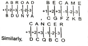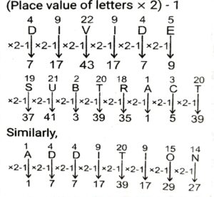 Solution:(Letters at odd places → Place value of the alphabet), (letters at even places → place value of the alphabet +1)