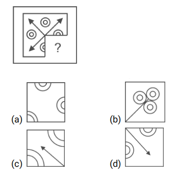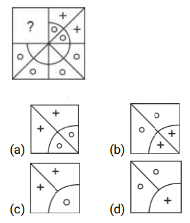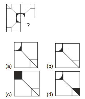 Completion of Figures – Railway ReasoningTotal Questions: 4511. Choose from the alternatives the f igure that best completes the pattern given below [RRB JE 22/05/2019 (Afternoon)](a)(b)(c)(d)Correct Answer: (c)Solution:12. Choose from the alternatives the f igure that best completes the pattern given below. [RRB JE 23/05/2019 (Morning)](a)(b)(c)Correct Answer: (a)Solution:13. Choose from the alternatives the figure that best completes the pattern given below. [RRB JE 25/05/2019 (Afternoon)](a)(b)(c)(d)Correct Answer: (a)Solution:14. Choose from the alternatives the figure that best completes the pattern given below. [RRB JE 25/05/2019 (Evening)](a(b)(c)(d)Correct Answer: (c)Solution:15. Choose from the alternatives the figure that best completes the pattern given below. [RRB JE 31/05/2019 (Evening)](a)(b)(c)(d)Correct Answer: (d)Solution:16. Select the correct option to complete the image-pattern of given image [RPF Constable 17/01/2019 (Evening)](a)(b)(c)(d)Correct Answer: (a)Solution:17. Choose the correct alternative which will complete the image pattern of the given image. [RPF Constable 18/01/2019 (Morning)](a)(b)(c)(d)Correct Answer: (a)Solution:18. Select the correct option to complete the image-pattern of a given image. [RPF Constable 18/01/2019 (Afternoon)](a)(b)(c)(d)Correct Answer: (c)Solution:19. Select the correct option that will complete the image pattern in the given picture. [RPF Constable 19/01/2019 (Morning)](a)(b)(c)(d)Correct Answer: (b)Solution:20. Select the correct option from the following that forms a perfect square (3 out of 5 figure are given below): [RPF S.I. 19/12/2018 (Morning)](a) 1,4,5(b) 1,3,5(c) 2,4,5(d) 2,3,5Correct Answer: (b) 1,3,5Solution:Submit Quiz« Previous12345Next »