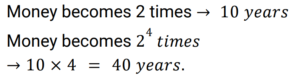 1. If a sum of money doubles itself in 10 years at compound interest, then in how many years will it become 16 times of itself at the same rate ? [Group D 23/08/2022 (Morning) ]
