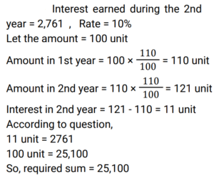 8. If the interest earned during the 2nd year on a certain sum is ₹2,761, and the rate of interest is 10% per annum compounded annually, then the sum is: [Group D 06/10/2022 (Afternoon)]