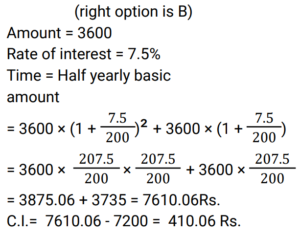 9. A bank offers 7.5% compound interest per annum calculated on a half-yearly basis. A customer deposits ₹3,600 each on 1 January and 1 July of a year. At the end of the year, the amount he would have gained by way of interest is _________. [Give your answer correct to 2 decimal places.] [Group D 07/10/2022 (Afternoon)]