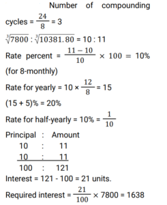 10. A sum of ₹7800 amounts to ₹10381.80 at x% p.a. In 2 years when the interest is compounded- 8monthly. What will be the compound interest on the same sum at (x + 5)% p.a. In one year, if the interest is compounded half yearly ? [NTPC CBT II Level 6 (09/05/2022) Shift 2 ]