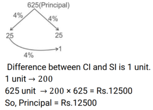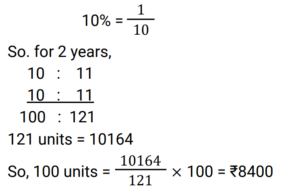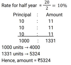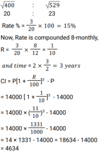 Compound Interest (Railway Maths) (Part – II)Total Questions: 5021. A sum of money invested at 10% compound interest per annum amounts to ₹10,164 in 2 years interest compounded annually. What was the sum invested ? [Level 3 (17/06/2022) Shift 2 ](a) ₹8,800(b) ₹8,200(c) ₹8,300(d) ₹ 8,400Correct Answer: (d) ₹ 8,400Solution:22. Find the answer of given question? [Level 3 (17/06/2022) Shift 3 ](a) ₹ 5224(b) ₹ 5234(c) ₹ 5324(d) ₹ 5334Correct Answer: (c) ₹ 5324Solution:23. A sum of ₹ 14000 amounts to ₹ 18515 in 2 years at a certain rate percent p.a. Interest compounded yearly. What will be the compound interest on the same sum , in the same time and at the same rate, if the interest is compounded 8 -monthly ? [Level 3 (17/06/2022) Shift 3 ](a) ₹ 4494(b) ₹ 4620(c) ₹ 4634(d) ₹ 3234Correct Answer: (c) ₹ 4634Solution:24. The simple interest on a sum of amount for 2 years at 10% per annum is Rs. 500. The compound interest on the same sum at the same rate for the same time is: [RRB NTPC 28/12/2020 (Morning)](a) Rs. 515(b) Rs. 525(c) Rs. 510(d) Rs. 520Correct Answer: (b) Rs. 525Solution:25. A sum of money amounts to Rs. 12,100 in 2 years and Rs. 13,310 in 3 years, when compounded annually. Find the rate of interest. [RRB NTPC 29/12/2020 (Morning)](a) 9%(b) 12%(c) 8%(d) 10%Correct Answer: (d) 10%Solution:26. A sum of money amounts to Rs.1600 in two years and Rs.1700 in three years, at compound interest, compounded annually. What is the rate of interest? [RRB NTPC 30/12/2020 (Morning)](a) 6%(b) 7%(c) 6.25%(d) 6.5%Correct Answer: (c) 6.25%Solution:27. Find the rate of interest for a sum that becomes 14641/10000 times of itself in 4 years compounded annually. [RRB NTPC 04/01/2021 (Evening)](a) 15%(b) 12%(c) 20%(d) 10%Correct Answer: (d) 10%Solution:28. A sum of Rs.12,000.00 deposited at compound interest becomes double at the end of 5 years. At the end of 15 years the sum will be: [RRB NTPC 07/01/2021 (Morning)](a) Rs. 1,08,000.00(b) Rs. 1,20,000.00(c) Rs. 84,000.00(d) Rs. 96,000.00Correct Answer: (d) Rs. 96,000.00Solution:29. The difference between the compound interest compounded annually and the simple interest on a certain sum of money for 2 years at 4% per annum is Rs. 20.00. The sum is: [RRB NTPC 07/01/2021 (Morning)](a) Rs. 11,500.00(b) Rs. 8,500.00(c) Rs. 12,500.00(d) Rs. 10,500.00Correct Answer: (c) Rs. 12,500.00Solution:30. A sum of money becomes Rs.10648 after 3 years and Rs. 9680 after 2 years of compound interest computed yearly. What is the rate of interest ? [RRB NTPC 08/01/2021 (Morning) ](a) 12%(b) 8%(c) 9%(d) 10%Correct Answer: (d) 10%Solution:Submit Quiz« Previous12345Next »