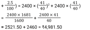 4. A bank offers compound interest at the rate 5% per annum calculated half yearly on its deposits. A customer deposits ₹2,400 each on 1st January and 1st July of a year. Find the amount he received at the end of the year. [SSC MTS 12/09/2023 (2nd Shift)]