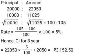 5. The compound interest accrued on a sum of ₹20,000 at the end of 2 years compounded annually is ₹2,050. Find the compound interest at the end of the 3rd year. [SSC CHSL 17/08/2023 (4th Shift)]