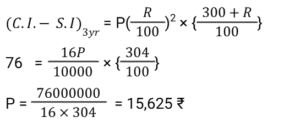 10. If the difference between the compound interest and simple interest on a certain sum of money for 3 years at the rate of 4% per annum is ₹76, then what is the sum ? [SSC CHSL 04/08/2023 (1st Shift)]