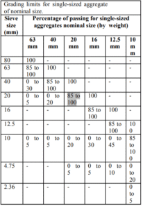• IS : 383–1970 requires that the crushing value shall not exceed 45 percent for aggregate used for aggregate used for concrete other than for wearing surfaces and 30 percent for concrete wearing surface such as runway, roads and pavements.