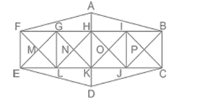 Counting of figures– Railway Reasoning (part – 1)Total Questions: 5021. Study the given pattern carefully and select the number that can replace the question mark(?) in it. [RRB NTPC 01/03/2021 (Morning)](a) 21(b) 9(c) 15(d) 36Correct Answer: (a) 21Solution:Logic: Product of number of sides + 1 5 × 3 + 1 = 16 6 × 5 + 1 = 31 3 × 4 + 1 = 13 Similarly, 4 × 5 + 1 = 2122. Find the total number of straight lines in the following figure. [RRB NTPC 04/03/2021 (Morning)](a) 11(b) 16(c) 12(d) 9Correct Answer: (a) 11Solution:Horizontal = 4 Vertical = 4 , Diagonally = 3 Total straight lines = 4 + 4 + 3 = 1123. How many squares are there in the following figure? [RRB NTPC 04/03/2021 (Evening)](a) 34(b) 30(c) 24(d) 20Correct Answer: (a) 34Solution:Total 34 squares are available.24. Find the minimum number of straight lines in the following figure. [RRB NTPC 07/03/2021 (Evening)](b) 12(b) 12(c) 13(d) 11Correct Answer: (b) 12Solution:If we look at the outer square, the minimum number of straight lines required will be = 6 ; And for the inner square, the minimum number of straight lines required will be = 6 ; So, the minimum number of straight lines in the given figure is 12 ;25. Find the total no. of triangles in the given figure. [RRB NTPC 08/03/2021 (Evening)](a) 10(b) 12(c) 13(d) 15Correct Answer: (a) 10Solution:Total number of triangle = (ABC) + (BDE) + (CFG) + (EHI) + (GJK) + (BLC) + (ABL) + (CME) + (ENG) + (GOI) = 1026. Find the number of squares in the given figure. [RRB NTPC 09/03/2021 (Morning)](a) 30(b) 41(c) 36(d) 29Correct Answer: (a) 30Solution:Number of squares in each 1/4th part = 6 and 6 squares are there in the large square Total number of squares = 6 × 4 + 6 = 3027. Find the number of triangle in the figure given below: [RRB NTPC 11/03/2021 (Evening)](a) 42 triangles(b) 44 triangles(c) 40 triangles(d) 46 trianglesCorrect Answer: (b) 44 trianglesSolution:32 triangles = Square FGLE has 8 triangles, square GHKL, has 8 triangles, square HIJK has 8 triangles and square IBCJ has 8 triangles. 6 triangles = FAH, ABH, ABF, KCD, KDE, ECD 6 triangles = GEK, LHJ, KIC, FLH, GKI, HJB Total triangles = 32 + 6 + 6 = 4428. how many triangles are there in the given figure ? [RRB JE 22/05/2019 (Afternoon)](a) 6(b) 8(c) 10(d) 5Correct Answer: (c) 10Solution:Here triangles are = afg, gbj, jei, hid, fhc, ahe, fdb, bic, ajd, cge. Hence 10 triangles are present in the given figure.29. How many squares are there in the given figure? [RRB JE 22/05/2019 (Evening)](a) 20(b) 11(c) 25(d) 16Correct Answer: (d) 16Solution:There are total 16 squares in the given figure i.e. ABUK, LNRJ, KUHI, BCEU, NDFR, UEGH, LMTK, KTSJ, MNUT, TURS, NOPU, UPQR, ODEP, PEFQ,MOQS and ACGI.30. How many squares are there in the given figure ? [RRB JE 23/05/2019 (Morning)](a) 18(b) 21(c) 26(d) 12Correct Answer: (c) 26Solution: Trick :- firstly calculate all rows and columns and then (Cₙ × Rₙ ) + (Cₙ - 1 × Rₙ - 1 ) + ……… so on. In the above question there are 3 rows and 5 columns hence 5 × 3 + 4 × 2 + 3 × 1 ⇒ 15 + 8 + 3 = 26Submit Quiz« Previous12345Next »
