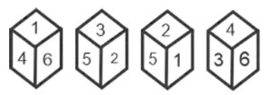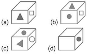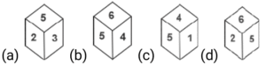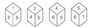 Cube and Dice – Railway ReasoningTotal Questions: 2411. Four different positions of some dice are shown. Select the number that will be on the face opposite of the one having 5. [RRB NTPC 16/02/2021 (Morning)](a) 2(b) 6(c) 4(d) 3Correct Answer: (a) 2Solution:Opposite face of 5 are not possible - 1 , 3, 4 , 6 ( adjacent face ) So, only possible face 212. Two positions of a rotated cube are shown below. [RRB NTPC 27/02/2021 (Morning) ]Which shape will be at the bottom when ‘ ● ’ is on the top?(a)(b)(c)(d)Correct Answer: (d)Solution:13. Four different positions of a cube are shown. [RRB NTPC 04/03/2021 (Evening)]Which shape will be at the bottom when ‘ ● ’ is one the having ?(a)(b)(c)(d)Correct Answer: (d)Solution:Only possible figure is black rectangle. Except this , all are adjacent faces so that they are not opposite .14. Three different positions of the same dice are shown. Select the letter that will be on the face opposite to the one having D. [RRB NTPC 09/03/2021 (Evening)](a) E(b) A(c) F(d) CCorrect Answer: (a) ESolution:Opposite face not possible for D = A ,B, F , C (adjacent face) So that only possible opposite face = E15. Select the box that can be formed by folding the given sheet along the lines. [RRB NTPC 12/03/2021 (Evening)] (a)(b)(c)(d)Correct Answer: (c)Solution:In the above figure, opposite faces have been shown using curved lines. The figure that has the same pair of opposite faces as that of the question figure is in option (c) only.16. Four different positions of the same dice are shown. Select the symbol that will be on the face opposite to the one having + . [RRB NTPC 19/03/2021 (Morning)](a) &(b) *(c) -(d) $Correct Answer: (d) $Solution:Not possible face for + is equal to # , - , * , & Because they cojecutive face of the +. So that , only possible opposite face for + is equal to $.17. Three different positions of the same dice are shown. Select number that will be on the face opposite to the one having 4. [RRB NTPC 07/04/2021 (Morning)](a) 6(b) 3(c) 5(d) 1Correct Answer: (a) 6Solution:Opposite face 4 is not possible = 1 , 5 , 2 , 3 (consecutive face of the 4 ) So that , only possible opposite face of 4 = 618. Read the given information and answer the question that follows. [RRB NTPC 24/07/2021 (Morning)]The following are different views of the same cube. Which of the following is definitely a pair of opposite faces?(a) 5 and 3(b) 1 and 3(c) 3 and 6(d) 1 and 2Correct Answer: (b) 1 and 3Solution:By the given figure - Opposite face of 1 is not possible = 4 , 6 , 5 , 2 Opposite face of 3 is not possible = 4 , 6 , 5 , 2 So , 1 is the opposite to 3.19. The following are different views of the same wooden block. [RRB NTPC 24/07/2021 (Evening)]What would be the number opposite 5? (Ignore the orientation of the numbers.)(a) 4(b) 3(c) 2(d) 1Correct Answer: (c) 2Solution:From the dice numbers 1, 3 and 4 we can say that 1, 3, 4, 6 5 cannot have the opposite face; Then the number opposite to 5 will be 2;20. Which of the cubes given in the options will be formed when the following sheet is folded along the lines? [RRB NTPC 26/07/2021 (Evening)](a)(b)(c)(d)Correct Answer: (b)Solution:Opposite of 6 = 2 Opposite of 5 = 3 Opposite of 4 = 1Submit Quiz« Previous123Next »