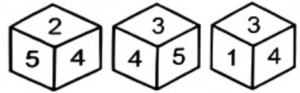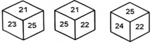 Cube and Dice (SSC REASONING)Total Questions: 10021. Three different positions of the same dice are shown. Find the number on the face opposite the face showing the number ' 4'.(a) 3(b) 2(c) 6(d) 5Correct Answer: (c) 6Solution:From 1st and 3rd dice the opposite faces are 1↔5, 2↔3, 4↔622. Two different positions of the same die are shown below. What is the number on the face opposite to the one having 2?(a) 6(b) 1(c) 4(d) 5Correct Answer: (d) 5Solution:From the two dice the opposite face are 3↔6, 1↔4, 2↔523. Six letters Q, Z, V, T, L and A are written on different faces of a dice. Two positions of this dice are shown in the figures below. Find the letter on the face opposite to Q.(a) T(b) V(c) Z(d) ACorrect Answer: (a) TSolution:From both the dice the opposite face are Z↔L, Q↔T, V↔A24. Six numbers 21, 22, 23, 24, 25 and 26 are written on different faces of a dice. Three positions of this dice are shown in the figure. Find the number on the face opposite to 24.(a) 22(b) 21(c) 26(d) 25Correct Answer: (b) 21Solution:From 2nd and 3rd dice 25 and 22 are common, so the opposite face of 24 is 21.25. Six letters P, Q, R, S, T and U are written on different faces of a dice. Two positions of this dice are shown in the figure below. Find the letter on the face opposite to R.(a) T(b) Q(c) U(d) SCorrect Answer: (d) SSolution:From the two dice the opposite are T↔U, P↔Q, R↔S26. Six letters S, T, M, P, R and C are written on different faces of a dice. Two positions of this dice are shown in the figures below. Find the letter on the face opposite to M.(a) R(b) P(c) C(d) SCorrect Answer: (a) RSolution:From two dice the opposite face are M↔R, P↔S27. Six letters A, T, M, P, S and R are written on different faces of a dice. Two positions of this dice are shown in the figure below. Find the letter on the face opposite to the one having R.(a) S(b) T(c) A(d) MCorrect Answer: (d) MSolution:From the two dice the opposite faces are T↔P, A↔S, M↔R28. Two different positions of the same dice with faces 3, 7, 8, 2, 9 and 4 are shown below. Select the number that will be on the face opposite to the one having 4.(a) 8(b) 3(c) 9(d) 2Correct Answer: (a) 8Solution:From the two dice the opposite face are 2↔3, 7↔9, 4↔8.29. Six letters K, L, M, N, O and P are written on different faces of a dice. Three positions of this dice are shown in the figure. Find the letter on the face opposite to M.(a) P(b) N(c) K(d) LCorrect Answer: (b) NSolution:From 1st and 2nd dice K and O are common. The opposite face of M is N.30. Two different positions of the same dice are given below. Which is the number on the face opposite the face containing1?(a) 6(b) 5(c) 4(d) 3Correct Answer: (a) 6Solution:From the two dice the opposite face are 2↔4, 3↔5, 6↔1Submit Quiz« Previous12345678910Next »