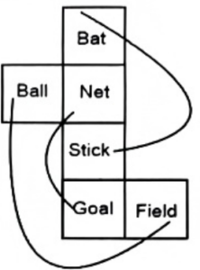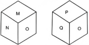 Cube and Dice (SSC REASONING)Total Questions: 10041. Six Roman numbers 1, II, III, IV, V and VI are written on different faces of a dice. Two positions of this dice are shown in the figure below. Find the Roman number on the face opposite to 'VI'.(a) V(b) II(c) III(d) IVCorrect Answer: (b) IISolution:in both dice two roman numbers(III,V) are common. So, the opposite face of 'VI' is 'll'.42. Six numbers 5. 6.7.8. 9 and 10 are written on different faces of a dice. Two positions of this dice are shown in the figure below. Find the number on the face opposite to '7'.(a) 6(b) 9(c) 8(d) 10Correct Answer: (d) 10Solution:in both dice two numbers(8, 9) are common. So, the opposite face of '7' is '10'.43. Six letters X, T, S, M, R and O are written on different faces of a dice. Two positions of this dice are shown in the figures below. Find the letter on the facе opposite to R.(a) S(b) O(c) T(d) MCorrect Answer: (a) SSolution:from both dices the opposite face are, T↔M, S↔R, X↔044. A cube is constructed by folding the given sheet along the lines shown. In the cube so formed, what would be the word on the opposite side of 'Ball'?(a) Field(b) Goal(c) Stick(d) BatCorrect Answer: (a) FieldSolution:As we can see, the opposite faces are. Ball ↔ Field, Bat ↔ stick, Net ↔ Goal Therefore, 'Field' is opposite to 'Ball'.45. Six letters P, J, U, W, L and K are written on different faces of a dice. Two positions of this dice are shown in the figures below. Find the letter on the face opposite to P.(a) U(b) K(c) W(d) JCorrect Answer: (c) WSolution:From both the dice the opposite faces are J↔K, P↔W, U↔L46. Six letters O, Z, F, T, R and M are written on different faces of a dice. Two positions of this dice are shown in the figures below. Find the letter on the face opposite to Z.(a) T(b) F(c) R(d) MCorrect Answer: (d) MSolution:From the two dice the opposite faces are Z↔M, O↔T, F↔R47. Six words 'Eat', 'Play', 'Cry', 'Sleeр', 'Dance' and 'Run' are written on different faces of a dice. Two positions of this dice are shown in the figure below. Find the word on the face opposite to 'Eat'.(a) Cry(b) Play(c) Dance(d) SleepCorrect Answer: (c) DanceSolution:From the two dice we can see that play and cry are common. Hence, 'Dance' will be opposite to 'Eat'.48. Six letters M, N, O, P. Q and R are written on different faces of a dice. Two positions of this dice are shown in the figure below. Find the letter on the face opposite to O.(a) R(b) M(c) Q(d) PCorrect Answer: (a) RSolution:From the two dice the opposite faces are O↔R, N↔Q, M↔P49. Two different positions of the same dice are given below. Which is the number on the face opposite the face containing 5?(a) 6(b) 2(c) 1(d) 3Correct Answer: (c) 1Solution:From the two dice the opposite pairs are 2↔6, 3↔4, 1↔550. Two different positions of the same dice are given below. Which is the number on the face opposite the face containing 5?(a) 1(b) 6(c) 2(d) 3Correct Answer: (a) 1Solution:From the two dice the opposite Faces are 6↔3, 1↔5, 2↔4Submit Quiz« Previous12345678910Next »