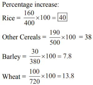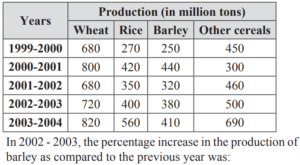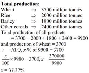 7. During the period 1999 - 2000 to 2003 - 2004, x per cent of the total production is production of wheat. The value of x is about: