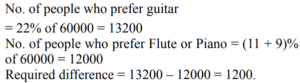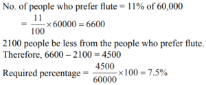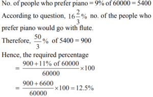 4. If 16⅔% of the people who prefer Piano, would go with the people who prefers Flute, the percentage of people who prefer Flute would have been :