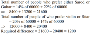 2. The total number of people who prefer either Sarod or Guitar, is greater than the total number of people who prefer either Violin or Sitar by: