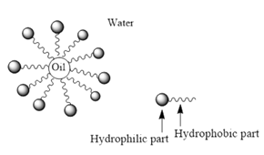 Solution:Emulsifiers are usually long-chain compounds with polar groups, like soap. The soap molecules consist of two parts: (i) a long hydrocarbon chain (C₁₇H₃₅), which is soluble in fat, and (ii) a dissolved polar part in water (COO⁻ Na⁺). During emulsion, the dipolar alkaline group of soap dissolves oil or grease, and the polar group dissolves in water. When rubbed, the greases are suspended in the water in the form of small droplets and flow smoothly with water.