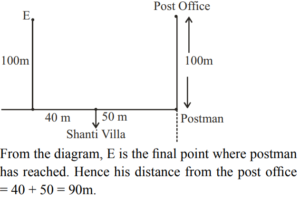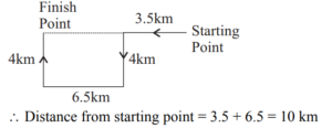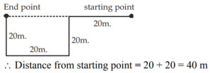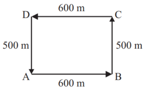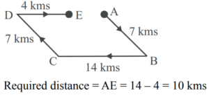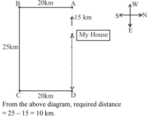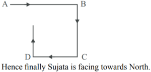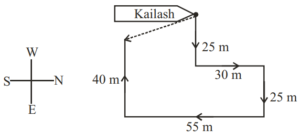 DIRECTION AND DISTANCE (General Mental Ability) UPSC EPFOTotal Questions: 3011. Pinky walks a distance of 600 metres towards east, turns left and moves 500 metres, then turns left and walks 600 metres and then turns left again and moves 500 metres and halts. At what distance in metres is she from the starting point?(a) 0(b) 2200(c) 600(d) 500Correct Answer: (a) 0Solution:12. Q walked 20 metres towards West, took a left turn and walked 20 metres. He then took a right turn and walked 20 metres and again took a right turn and walked 20 metres. How far is Q now from the starting point?(a) 40 metres(b) 50 meters(c) 80 metres(d) Data inadequateCorrect Answer: (a) 40 metresSolution:13. A postman was returning to the Post Office which was in front of him to the north. When the Post Office was 100 metres away from him, he turned to the left and moved 50 metres to deliver the last letter at Shanti Villa. He then moved in the same direction for 40 metres, turned to his right and moved 100 metres. How many metres away was he now from the Post Office?(a) 0 metre(b) 150 metre(c) 90 metre(d) 100 metreCorrect Answer: (c) 90 metreSolution:14. Laxman went 15 km to the west from my house, then turned left and walked 20 km. He then turned East and walked 25 km and finally turning left, covered 20 km. How far was he from my house?(a) 5 km(b) 10 km(c) 40 km(d) 80 kmCorrect Answer: (b) 10 kmSolution:15. Kailash faces towards north. Turning to his right, he walks 25 metres. He then turns to his left and walks 30 metres. Next, he moves 25 metres to his right. He then turns to his right again and walks 55 metres. Finally, he turns to the right and moves 40 metres. In which direction is he now from his starting point?(a) South-West(b) South(c) North-West(d) South-EastCorrect Answer: (d) South-EastSolution:16. Radhika walks 3.5 km to the west and then turns the south and walks 4 km. Again, she turns to the west and walks 6.5 km. Next, she turns and walks 4 km in north direction. How far is she now from her starting point ?(a) 18 km(b) 6.5 km(c) 10 km(d) 12 kmCorrect Answer: (c) 10 kmSolution:17. Mohan walked 30 metres towards South, took a left turn and walked 15 metres. He then took a right turn and walked 20 metres. He again took a right turn and walked 15 metres. How far is he from the starting point ?(a) 95 metres(b) 50 metres(c) 70 metres(d) Cannot be determinedCorrect Answer: (b) 50 metresSolution:18. Alok walked 30 m towards East and took a right turn and walked 40 m. He again took a right turn and walked 50 m. Towards which direction is he from his starting point?(a) South(b) West(c) South-West(d) South-EastCorrect Answer: (c) South-WestSolution:19. One morning Sujata started to walk towards the Sun. After covering some distance she turned to right then again to the right and after covering some distance she again turns to the right. Now in which direction is she facing ?(a) North(b) South(c) North-East(d) South-WestCorrect Answer: (a) NorthSolution:20. Radha moves towards South-East and travels a distance of 7 kms, then she moves towards West and travels a distance of 14 kms. From here she moves towards NorthWest and travels a distance of 7 kms and finally she moves a distance of 4 kms towards East. How far is she now from the starting point ?(a) 3 kms(b) 4 kms(c) 10 kms(d) 11 kmsCorrect Answer: (c) 10 kmsSolution:Submit Quiz« Previous123Next »