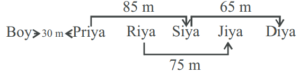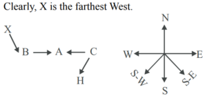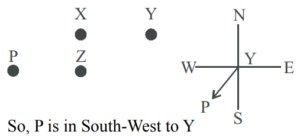 DIRECTION AND DISTANCE (General Mental Ability) UPSC EPFOTotal Questions: 3021. I am facing East. I go 20 metres, then turning to the left I go 20 metres, then after turning to the right I go 40 metres and then I go 40 metres to the right. Now in which direction am I from my original position?(a) North-West(b) West(c) South-East(d) EastCorrect Answer: (c) South-EastSolution:22. Rahul travelled from a point and goes straight to point ‘Y’ at a distance of 90 metres. He turned right and walked 40 metres, then again right and walked 70 metres. Finally, he turned right and walked 40 metres. How far is he from the starting point?(a) 70 metres(b) 10 metres(c) 20 metres(d) 30 metresCorrect Answer: (c) 20 metresSolution:23. A boy rode his bicycle Northward, then he turned left and rode 1 km and again turned left and rode 2 km. He found himself 1 km west of his starting point. How far did he ride northward initially?(a) 1 km(b) 2 km(c) 3 km(d) 5 kmCorrect Answer: (b) 2 kmSolution:24. Y is in east to X which is north to Z. If P is in west to Z, then P is in which directions of Y ?(a) North(b) East(c) South-East(d) South-WestCorrect Answer: (d) South-WestSolution:25. A boy walks from a certain point to Priya, meets Riya and then Siya and after this he meets Jiya and then Diya. Find the total distance cover by the boy if the distance between boy and Priya is 30 m, distance between priya and Siya is 85 m, Riya and Jiya is 75 m and Siya and Diya is 65m and all girls are standing in a straight line.(a) 180 m(b) 215 m(c) 225 m(d) 165 mCorrect Answer: (a) 180 mSolution:26. Ramesh walked 20 metres towards east, then turned left and walked 15 metres, turned right and walked 25 metres and again walked 15 metres after turning right. At what distance is now Ramesh from the starting point ?(a) 60 m(b) 35 m(c) 40 m(d) 45 mCorrect Answer: (d) 45 mSolution:27. A is East of B and West of C. H is South-West of C and B is South-East of X. Who is the farthest West?(a) C(b) A(c) X(d) BCorrect Answer: (c) XSolution:28. A man is facing South. He turns 135° in the anti-clockwise direction and then 180° in the clockwise direction. Which direction is he facing now?(a) North-East(b) North-West(c) South-East(d) South-WestCorrect Answer: (d) South-WestSolution:29. Jatin starting from a fixed point, goes 15 m towards North and then after turning to his right, he goes 15 m. Then, he goes 10 m, 15 m and 15 m after turning to his left each time. How far is he from his starting point ?(a) 15 m(b) 5m(c) 10 m(d) 20 mCorrect Answer: (c) 10 mSolution:30. A man walks 1 km towards East then turns to South and walks 5 kms. Again he turns to East and walks 2 kms. Then he turns North and walks 9 kms. How far is he from the starting point?(a) 2 kms(b) 3 kms(c) 5 kms(d) 9 kmsCorrect Answer: (c) 5 kmsSolution:Submit Quiz« Previous123