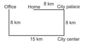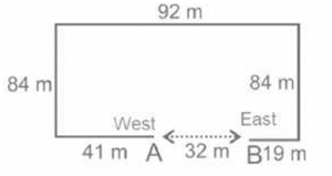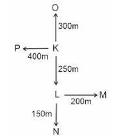 Directions – Railway Reasoning part – 2Total Questions: 501. Vishal is standing in a park facing the south direction. He then turns 90° clockwise on the same point. After that, he turns 45° clockwise. In which direction is he facing now? [Group - D 26/08/2022 ( Afternoon)](a) North-west(b) South-west(c) North-east(d) South-eastCorrect Answer: (a) North-westSolution:Total turn took by him clockwise = 90° + 45° = 135° Therefore, 135° clockwise from South direction becomes North-West direction.2. Arun starts from his office and drives 5 km towards the east. He then takes a right turn, drives 4 km, turns right and drives 5 km. He then takes a right turn and drives 3 km and stops at a shop. Which direction should he drive now in order to reach his office from the shop? [Group - D 29/08/2022 ( Afternoon)](All turns are 90° turns only.)(a) North(b) North-East(c) North - West(d) SouthCorrect Answer: (a) NorthSolution: Hence, From the above figure it is clear that to reach the office from the shop he has to drive towards the north direction.3. Dev walks 23 m towards the west from his hostel gate. He takes a left turn and walks 14 m. Then he takes a right turn and walks 63 m. Then he takes a left turn and walks 32 m. He takes a left turn again and walks 86 m. Again, he takes a left turn and walks 16 m to reach a canteen. How far and in which direction is the canteen from Dev’s hostel gate? [Group - D 29/08/2022 (Afternoon)](All turns are 90 degree turns only)(a) 30 m, North(b) 16 m, South(c) 16 m, North(d) 30 m, SouthCorrect Answer: (d) 30 m, SouthSolution:So, from the above figure it is clear that the Canteen is 30 meters south from the Hostel gate.4. Veronica started from a point and walked 25 m towards the west, she then turned right and walked for 5 m. From there she turned right and walked for 15 m, turned right again, and walked for 5 m. Which side should she turn now and how much distance should she walk for in order to reach the starting point? [Group - D 29/08/2022 ( Evening)](All turns are 90 degree turns only)(a) Right, 10 m(b) Right, 15 m(c) Left, 10 m(d) Left, 15 mCorrect Answer: (c) Left, 10 mSolution:Here, we can see in the above figure, Veronica should walk 10 meters left to reach the starting point.5. Rekha, from point A, walks 41 m towards the west. She takes a right turn and walks 84 m. She takes a right turn again and walks 92 m. Again, she takes a right turn and walks 84 m. She takes a right turn again and walks 19 m to reach point B. How far and in which direction is point B from point A? [Group - D 29/08/2022 ( Evening)](All turns are 90 degree turns only)(a) 30 m, West(b) 32 m, West(c) 32 m, East(d) 30 m, EastCorrect Answer: (c) 32 m, EastSolution:So, the distance between point A and B is 32 m east . i.e. (92- 41-19).6. Starting from point L, Narendra walks 100 m towards the north. He takes a right turn and walks 900 m. He takes a right turn again and walks 750 m. Again, he takes a right turn and walks 900 m to reach point M. How far and in which direction is point M from point L? [Group - D 30/08/2022 (Afternoon)](All turns are 90 degree turns only)(a) 700 m, North(b) 650 m, North(c) 650 m, South(d) 700 m, SouthCorrect Answer: (c) 650 m, SouthSolution:Distance from point L to point M = 750 - 100 = 650m Hence, Point M is 650m far and towards the South direction of point L.7. Jaya, from point A, walks 349 m towards the south. She takes a left turn and walks 129 m. She takes a left turn again and walks 349 m. She then takes a right turn and walks 94 m to reach point B. How far and in which direction is point A from point B? [Group - D 30/08/2022 (Evening)](All turns are 90 degree turns only)(a) 110 m, East(b) 223 m, West(c) 129 m, West(d) 203 m, EastCorrect Answer: (b) 223 m, WestSolution:We can clearly see in the above diagram that point A is 223 meters west from point B .8. Starting from point X, Aditya walked 30 m towards the south. He then took a left turn and walked 20 m. Then, he took a right turn and walked 10 m. He then took another right turn and walked 40 m. Finally, he took one last right turn and walked another 40 m to reach point Y. How far and in which direction is point X from point Y? [Group - D 30/08/2022 ( Evening)](All turns are 90 degree turns only)(a) 40 m, East(b) 20 m, East(c) 40 m, West(d) 20 m, WestCorrect Answer: (b) 20 m, EastSolution:According to question the aditya walks in following direction, From the above fig we can say that X is 20 m eas t from Point Y .9. Six houses, K, L, M, N, O and P, are located in the same colony. P is 400 m to the west of K. M is 200 m to the east of L. O is 300 m to the north of K. N is 150 m to the south of L. L is 250 m to the south of K. What is the straight distance between O and N? [Group - D 01/09/2022 ( Morning) ](a) 350 m(b) 400 m(c) 700 m(d) 600 mCorrect Answer: (c) 700 mSolution:Straight distance between O and N = 300 + 250 + 150 = 700m 10. Mr. Amardeep started his drive from his office and drove for 8 km towards the south. Then he took a left turn and drove for 15 km to reach the city centre. Then he turned 90° in the anti-clockwise direction and drove for 8 km to reach the city palace. From the city palace, he took a left turn and drove for 8 km to reach his home. In which direction is Amardeep's office from the city centre and his home, respectively ? [Group - D 01/09/2022 (Afternoon)](All turns are 90 degree turns only)(a) South - west and west(b) North - west and west(c) North - east and east(d) South - east and northCorrect Answer: (b) North - west and westSolution: Amardeep's home is in the North-west of the city center and his office is in the west from home.Submit Quiz12345Next »