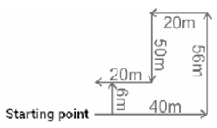 Directions – Railway Reasoning part – 3Total Questions: 5011. Eight houses M, N, O, P, Q, R, S, and T are located in a big campus. House O is 20 m west from house N which is 30 m south to house M. House M is 40 m west to house Q . House P is 50 m south to house Q . House R is at a distance of 15 m towards the north from house S. House T is located at 20 m to the east from house S. House R is 40 m west to house P. In which direction is house Q located from house R? [Group - D 18/09/2022 (Afternoon)](a) South - west(b) North - west(c) South - east(d) North - eastCorrect Answer: (d) North - eastSolution:Now, from the above we can see that Q is located in the North-east direction from house R.12. Rohit started on his bicycle from his home and travelled a distance of 5 km in the south direction. He then turned towards the right and travelled a distance of 2.5 km, and again took a turn towards the right and travelled a distance of 5 km. Finally, after taking a left turn, he travelled a distance of 5 km. What is the shortest distance between his present location and his home? [Group - D 19/09/2022 (Morning)](All turns are 90 degree turns only)(a) 9.5 km(b) 7.5 km(c) 8.5 km(d) 6.5 kmCorrect Answer: (b) 7.5 kmSolution:The shortest distance between his present location and his home = 5 + 2.5 = 7.5 km13. Aakash starts from Point O and drives 3 km towards the north. He then takes a right turn, drives 5 km, turns right and drives 10 km. He then takes a right turn and drives 5 km. He takes a final right turn, drives 3 km and stops at Point Z. How far and towards which direction should he drive in order to reach Point O from Point Z ? [Group - D 19/09/2022 (Afternoon)](All turns are 90 degree turns only)(a) 4km towards the north(b) 2 km towards the east(c) 2 km towards the west(d) 3 km towards the eastCorrect Answer: (a) 4km towards the northSolution: We can clearly see that O is 4 km north from point Z.14. Mohan drives 6 km towards the south and takes a turn to the right at 90°. After driving a distance of 3 km, he turns to the right and drives further 3 km. Now, in which direction is he from the starting place ? [Group - D 19/09/2022 (Evening)](All turns are 90 degree turns only)(a) South-East(b) South(c) South-West(d) NorthCorrect Answer: (c) South-WestSolution:Mohan is in South west direction from the starting place.15. Ajay is driving in the east direction and covers a distance of 2.5 km and then takes a turn in the left direction and travels a distance of 3 km. Further, he turns to the right and travels a distance of 4.5 km. Lastly, he turns to his right and travels a distance of 3 km. How far is he from the starting point? [Group - D 19/09/2022 (Evening)](All turns are 90 degree turns only)(a) 8 km(b) 7 km(c) 6 km(d) 5 kmCorrect Answer: (b) 7 kmSolution:16. Rishabh starts from his house and walks 14 m southwards. Then, he turns left and walks 30 m. Then, he turns left and walks 50 m. Then, he turns left and walks 10 m. He then turns left and walks 36 m. In which direction and how many meters away is he now from his house? [Group - D 20/09/2022 (Morning)](a) 30 m, West(b) 20 m, East(c) 10 m, South(d) 68m, South-eastCorrect Answer: (b) 20 m, EastSolution:We can clearly see that he is in the East direction and 20 m away from his home.17. Garima walked 15 m towards the north and then turned to the right and walked 20 m. She further turned to the left and walked 5 m. Finally, she turned to the left again and walked 20 m. How many metres was she from the starting point and in which direction? [Group - D 20/09/2022 (Afternoon)](All turns are 90 degree turns only)(a) 20 m, South(b) 15 m, South(c) 15 m, North(d) 20 m, NorthCorrect Answer: (d) 20 m, NorthSolution:We can clearly see that she is 20 m north from her starting point.18. From a point O, Mohita started walking and covered a distance of 30 m in the west direction. She then turned to her left and covered a distance of 15 m. She then took a left turn and travelled a distance of 10 m. Finally, she turned to the left and covered a distance of 15 m. [Group - D 22/09/2022 (Morning)]How far and in which direction is she now from the starting point O ? (All turns are 90 degree turns only)(a) 10 m, South(b) 10 m, East(c) 20 m, North(d) 20 m, WestCorrect Answer: (d) 20 m, WestSolution:Now we can clearly see that she is 20 m west from the starting point.19. Mohit starts from a point X and travels 2 km towards the north and takes a right turn and further travels 1 km. He then turns to the right and travels a distance of 3 km. He then takes a right turn and travels a distance of 1 km, and finally turns to the right again and travels a distance of 1 km. What is the present location of Mohit in respect of his point of initiation of travel, X ? [Group - D 22/09/2022 ( Afternoon)](All turns are 90 degree turns only)(a) Point X itself(b) 1 km east(c) 1 km north(d) 1 km southCorrect Answer: (a) Point X itselfSolution:We can clearly see that Mohit is present at his initial location.20. Ram walks 40 m towards east and then turns left and walks 56 m. From that point, he starts walking towards the west and walks 20 m. After taking a left turn, he walks 50 m and then takes a right turn and walks 20 m. How far and in which direction is Ram's current position from his starting point? [Group - D 22/09/2022 (Afternoon)](All turns are 90 degree turns only)(a) 50 m, West(b) 56 m, North(c) 6 m, North(d) 4 m, SouthCorrect Answer: (c) 6 m, NorthSolution:We can clearly see that he is 6 m away from his starting point in the north direction.Submit Quiz« Previous12345Next »
