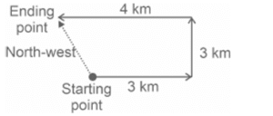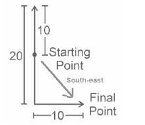 Directions – Railway Reasoning part – 4Total Questions: 5031. A tourist wanted to see the planetarium in a city. He walked from the railway station in the east direction and arrived at a pond. He turned left and then at the second corner of the pond, he turned right. Soon he reached the third corner of the pond. He turned left and arrived at the planetarium. In what direction was the railway station situated with respect to the planetarium? [RRB NTPC 05/01/2021 (Evening)](a) South-east(b) South-west(c) North-west(d) North-eastCorrect Answer: (b) South-westSolution:With reference to the planetarium, the railway station was in the south-west direction.32. If the south-east direction moves two places and becomes north-east and north-west moves two places to become south-west, what would be the direction that west would become, assuming all other directions make similar movements? [RRB NTPC 08/01/2021 (Evening)](a) North-east(b) East(c) North-west(d) SouthCorrect Answer: (d) SouthSolution:Every direction moves by 90° anticlockwise. So, west will become South.33. After starting from a point, Naveen walks 3 km towards the east. Then turning to his left he moves 3 km. After this he again turns his left and moves 4 km. In what direction is he standing from his starting point? [RRB NTPC 08/01/2021 (Evening)](a) South(b) South-east(c) North-west(d) NorthCorrect Answer: (c) North-westSolution:Now he is standing in the north-west direction from the starting point.34. Rakhi goes 3 meters North then turns right and walks 4 meters. then again turns right and walks 2 meters. then again turn right and walks 4 meters. How many meters is she from her original position? [RRB NTPC 09/01/2021 (Evening)](a) 2(b) 1(c) 4(d) On the starting point or OCorrect Answer: (b) 1Solution:35. Arun walks 10 yards straight from his house which is facing north and then he walks 20 yards in the reverse direction.Further he takes a left turn and walks 10 yards. In which direction is Arun now from his original position? [RRB NTPC 09/01/2021 (Evening)](a) North-west(b) South-west(c) South-east(d) North-eastCorrect Answer: (c) South-eastSolution:Now he is in the south-east direction from his original place.36. Max walks 15 km from his home towards the South, turns left and walks 15 km. From there, he turns left again and walks 15 km to reach his school. Find the shortest distance between his home and school? [RRB NTPC 10/01/2021 (Morning)](a) 15 km(b) 30 km(c) 45 km(d) 25 kmCorrect Answer: (a) 15 kmSolution:So from the above diagram : The shortest distance between his home and school is 15 km.37. Ganesh walks 5m to the south and turns to the east. He again walks for 5 m, turns to his left and stops after walking 10 m. He turns to his left again, walks 5 m and stops. How far is Ganesh from his starting point? [RRB NTPC 10/01/2021 (Evening)](a) 5√2m(b) 5 m(c) 10 m(d) 20 mCorrect Answer: (b) 5 mSolution:Required distance = 10 - 5 = 5 m38. Sheetal walks 25 m east. Then she turns right and walks another 25m. She Then turns right and walks another 40 m. Then again turning right, she walks 25 m. Finally she turns left and walks 10m. How far is she from the original position? [RRB NTPC 10/01/2021 (Evening)](a) 10.m(b) 25 m(c) 15 m(d) 20 mCorrect Answer: (b) 25 mSolution:Required distance (40 - 25 ) + 10 = 15 + 10 = 25 m39. John and Jenny stood at a point facing the North. John left Jenny in the Morning and walked towards west 3 Km, taking 15 minutes. Then he moved towards the south for 4 km, taking 25 minutes. What is the shortest distance Jenny needs to travel to meet John? [RRB NTPC 22/01/2021 (Evening)](a) 8 Km(b) 4 Km(c) 5 Km(d) 7 KmCorrect Answer: (c) 5 KmSolution:40. Mahesh was facing east when he started from home. He took two right turns and one left turn to reach his school. In which direction, is he facing after reaching his school? [RRB NTPC 25/01/2021 (Morning)](a) South(b) West(c) North(d) EastCorrect Answer: (a) SouthSolution:He is facing South after reaching his school.Submit Quiz« Previous12345Next »