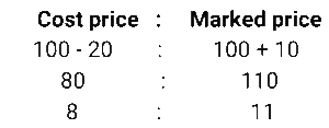 1. A shopkeeper allows a discount of 20% on the marked price of an item and thus gains 10%. What is the ratio of the cost price to the marked price of the item [SSC CGL 10/09/2024 (3rd Shift)]