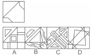 Embedded Figures – Railway ReasoningTotal Questions: 2321. The above figure is embedded in any of these four figures. The correct figure containing the above figure is. [RRB ALP 31/08/2018 (Morning)](a) D(b) B(c) A(d) CCorrect Answer: (a) DSolution:22. The given Problem Figure is embedded in one of the given Answer Figures. Which is that Answer Figure? [RRB ALP 31/08/2018 (Afternoon)](a) B(b) A(c) C(d) DCorrect Answer: (a) BSolution:23. Which of the given answer Figures is embedded in the given Problem Figure? [RRB ALP 31/08/2018 (Evening)](a) B(b) A(c) D(d) CCorrect Answer: (a) BSolution:Submit Quiz« Previous123