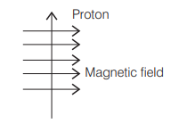 The direction of current is taken same as the direction of motion of positive charge (proton), therefore, the force on proton is directed out of the page.