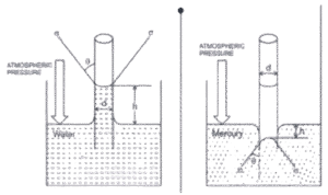 Capillary depression - cohesion > Adhesion.
