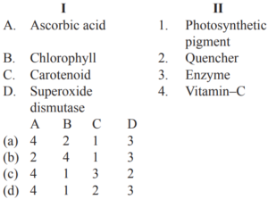 GENERAL SCIENCE (GENERAL STUDIES) Part-4Total Questions: 5421. Which of the following diseases is also known as infantile paralysis?(a) Lock jaw(b) Rabies(c) Polio(d) Chicken poxCorrect Answer: (c) Polio22. Which of the following is not a communicable disease ?(a) Typhoid(b) Malaria(c) AIDS(d) GoitreCorrect Answer: (d) Goitre23. Against which of the following does interferon act ?(a) Bacteria(b) Virus(c) Fungi(d) Snake venomCorrect Answer: (b) Virus24. Which of the following disease is a hormonal disorder ?(a) Anaemia(b) Cholera(c) Diabetes(d) GoitreCorrect Answer: (c) Diabetes25. Electric current is measured using which of the following instrument ?(a) Voltmeter(b) Anemometer(c) Wattmeter(d) AmmeterCorrect Answer: (d) Ammeter26. Photoperiodisrn affects(a) Flowering(b) Vegetative growth(c) Fruiting(d) All of theseCorrect Answer: (d) All of these27. Match the following :(a)(b)(c)(d)Correct Answer: (d)28. Allantois of Embryo helps in(a) respiration(b) excretion(c) protection(d) digestionCorrect Answer: (b) excretion29. Which one of the following animals belongs to mollusca ?(a) Hare(b) Hydra(c) Hyla(d) HaliotisCorrect Answer: (d) Haliotis30. Outside the nucleus DNA is found in(a) Mitochondria(b) Ribosome(c) Endoplasmic reticulum(d) Golgi bodiesCorrect Answer: (a) MitochondriaSubmit Quiz« Previous123456Next »