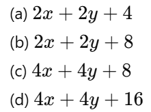 7. A rectangular plot of lawn shown in the figure has dimensions 'x' and 'y' and is surrounded by a gravel pathway of width 2 m. What is the total area of the Gravel Pathway? [1997]