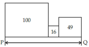 3. The following figure contains three squares with areas of 100, 16 and 49 sq. units respectively laying side by side as shown. By how much should the area of the middle square be reduced in order that the total length PQ of the resulting three squares is 19? [1996]