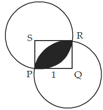 PQRS is a square of side 1 unit and Q, S are the centres of the two circles. The area of the shaded portion is