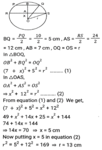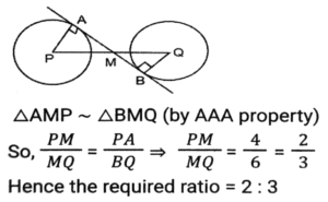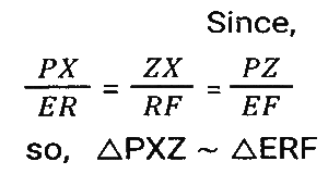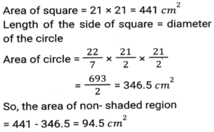 Geometry (Part-11)Total Questions: 5031. An arc on a circle that is 15 cm long subtends a 24° angle at the centre. What is the circumference of the circle? [SSC CHSL 02/06/2022 (Afternoon)](a) 240 cm(b) 220 cm(c) 236 cm(d) 225 cmCorrect Answer: (d) 225 cmSolution:32. PQ and RS are two parallel chords of a circle of length 10 cm and 24 cm, respectively, and lie on the same side of the centre O. If the distance between the chords is 7 cm, what is the radius (in cm) of the circle? [SSC CHSL 03/06/2022 (Afternoon)](a) 11(b) 9(c) 13(d) 7Correct Answer: (c) 13Solution:33. If the corresponding angles of two triangles are equal and satisfy (PX)/(ER) = (ZX)/(RF) = (PZ)/(EF), then [SSC CHSL 06/06/2022 (Afternoon)](a) ∆PXZ is similar to ∆EFR(b) ∆PXZ is similar to ∆ERF(c) ∆XPZ is similar to ∆ERF(d) ∆PXZ is similar to ∆REFCorrect Answer: (b) ∆PXZ is similar to ∆ERFSolution:34. Given below are some of the measures of the sides and angles of five triangles. Which of the triangles given in the options is not congruent to ∆ABC ? [SSC CHSL 06/06/2022(Evening)](a) ∆MNO(b) ∆GHI(c) ∆JKL(d) ∆DEFCorrect Answer: (c) ∆JKLSolution:On checking the options, we get ∆ABC ≠ ∆JKL For, ∆ABC to be congruent to ∆JKL we should have, AB = JK = 3.6 cm, BC = LJ = 4cm, ∠A = ∠J = 52.4º but here ∠B = ∠J = 52.4º, which is possible.35. The area of a right-angled triangle is 42 cm². If the length of one of its two sides containing the right angle is 10 cm, find the length (in cm) of the other side that contain the right angle. [SSC CHSL 06/06/2022 (Evening)](a) 4.0(b) 8.0(c) 8.4(d) 4.8Correct Answer: (c) 8.4Solution:36. ABCD is a square of 21 cm. A circle is inscribed in the square, which touches the sides of the square at P, Q, R, and S as shown below in the figure. What is the area (in cm²) of the non-shaded region? [figure is not drawn to scale and take π = 22/7] [SSC CHSL 07/06/2022 (Afternoon)](a) 88.4(b) 84.6(c) 90.7(d) 94.5Correct Answer: (d) 94.5Solution:37. Calculate the area (in cm²) of the following diagram. [SSC CHSL 07/06/2022 (Afternoon)](a) 45(b) 42(c) 48(d) 50Correct Answer: (a) 45Solution:In this figure we can clearly see five square of side 3 cm is formed when a line is produced So, area of shaded region = 5 × 3² = 45cm²38. Each edge of the following square is 20 cm long, and a circle is inscribed in the square as shown. What is the area of the shaded region (in cm²) ? [Use π = 3.14] [SSC CHSL 08/06/2022 (Afternoon)](a) 88(b) 85(c) 86(d) 84Correct Answer: (c) 86Solution:Area of the square = a² = 20² = 400 Radius of circle = half of the side of square = 10 cm Area of the circle = πr² = 3.14 × 10 × 10 = 314 Area of shaded region = 400 - 314 = 86 cm²39. In a circle, AB and CD are two diameters which are perpendicular to each other. Find the length of chord AC. [SSC CHSL 09/06/2022 (Afternoon)](a) √2 CD(b) AB/√2(c) CD/2(d) 2 ABCorrect Answer: (b) AB/√2Solution:40. The ratio in which a transverse common tangent is drawn to two circles with radii 4 cm and 6 cm, respectively, divides the line joining their centres is: [SSC CHSL 09/06/2022 (Evening)](a) 2 : 3(b) 1 : 1(c) 1 : 2(d) 3 : 4Correct Answer: (a) 2 : 3Solution:Submit Quiz« Previous12345Next »