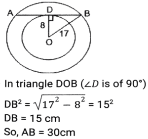Geometry (Part-12)Total Questions: 5041. In triangle ABC, D is a point on BC such that BD : DC = 3 : 4. E is a point on AD such that AE : ED = 2 : 3. Find the ratio of area (∆ECD): area (ΔΑΕΒ). [SSC CGL 17/08/2021 (Evening)](a) 9 : 8(b) 1 : 2(c) 2 : 1(d) 8 : 9Correct Answer: (c) 2 : 1Solution:42. Point P lies outside a circle with centre O. Tangents PA and PB are drawn to meet the circle at A and B respectively. If ∠APB = 80°, then ∠OAB is equal to: [SSC CGL 18/08/2021 (Morning)](a) 140°(b) 40°(c) 70°(d) 35°Correct Answer: (b) 40°Solution:43. ΔABC~ ΔDEF If the areas of ΔABC and ΔDEF are 100 cm² and 81 cm², respectively and the altitude of ΔDEF is 6.3 cm, then the corresponding altitude (in cm) of ΔABC is: [SSC CGL 18/08/2021 (Morning)](a) 5.6(b) 9(c) 7(d) 8.4Correct Answer: (c) 7Solution:44. ∆ABC is an equilateral triangle. D is a point on side BC such that BD : BC = 1 : 3. If AD = 5√7cm, then the side of the triangle is: [SSC CGL 18/08/2021 (Afternoon)](a) 18cm(b) 12cm(c) 20cm(d) 15cmCorrect Answer: (d) 15cmSolution:45. In a trapezium PQRS, PQ is parallel to RS and diagonal PR and QS intersect at O. PQ = 4 cm, SR = 10cm, then what is area (∆POQ) : area (∆SOR)? [SSC CGL 18/08/2021 (Afternoon)](a) 4 : 25(b) 2 : 3(c) 4 : 9(d) 2 : 5Correct Answer: (a) 4 : 25Solution:46. A chord AB of circle C₁ of radius 17 cm touches circle C₂ which is concentric to C₁. The radius of C₂ is 8 cm. What is the length (in cm) of AB? [SSC CGL 18/08/2021 (Afternoon)](a) 30(b) 25(c) 20(d) 24Correct Answer: (a) 30Solution:47. In a right angled triangle ABC, the lengths of the sides containing the right angle are 5 cm and 12 cm respectively. A circle is inscribed in the triangle ABC. What is the radius of the circle (in cm)? [SSC CGL 18/08/2021 (Evening)](a) 2.8(b) 3(c) 2(d) 2.5Correct Answer: (c) 2Solution:48. Points A and B are on a circle with centre O. Point C is on the major arc АВ. If ∠OAC = 35° and ∠OBC = 45°, then what is the measure (in degrees) of the angle subtended by the minor arc AB at the centre? [SSC CGL 18/08/2021 (Evening)](a) 80(b) 70(c) 100(d) 160Correct Answer: (d) 160Solution:49. Triangle ABC is an equilateral triangle. D and E are points on AB and AC respectively such that DE is parallel to BC and is equal to half the length of BC. If AD + CE + BC = 30 cm, then find the perimeter (in cm) of the quadrilateral BCED. [SSC CGL 20/08/2021 (Morning)](a) 45(b) 25(c) 37.5(d) 35Correct Answer: (c) 37.5Solution:50. The angles of a triangle are in AP (arithmetic progression). If measure of the smallest angle is 50° less than that of the largest angle, then find the largest angle (in degrees) [SSC CGL 20/08/2021 (Afternoon)](a) 80(b) 85(c) 90(d) 75Correct Answer: (b) 85Solution:Submit Quiz« Previous12345