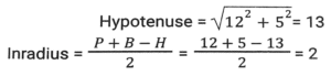 Geometry (Part-12)Total Questions: 5041. In triangle ABC, D is a point on BC such that BD : DC = 3 : 4. E is a point on AD such that AE : ED = 2 : 3. Find the ratio of area (∆ECD): area (ΔΑΕΒ). [SSC CGL 17/08/2021 (Evening)](a) 9 : 8(b) 1 : 2(c) 2 : 1(d) 8 : 9Correct Answer: (c) 2 : 1Solution:42. Point P lies outside a circle with centre O. Tangents PA and PB are drawn to meet the circle at A and B respectively. If ∠APB = 80°, then ∠OAB is equal to: [SSC CGL 18/08/2021 (Morning)](a) 140°(b) 40°(c) 70°(d) 35°Correct Answer: (b) 40°Solution:43. ΔABC~ ΔDEF If the areas of ΔABC and ΔDEF are 100 cm² and 81 cm², respectively and the altitude of ΔDEF is 6.3 cm, then the corresponding altitude (in cm) of ΔABC is: [SSC CGL 18/08/2021 (Morning)](a) 5.6(b) 9(c) 7(d) 8.4Correct Answer: (c) 7Solution:44. ∆ABC is an equilateral triangle. D is a point on side BC such that BD : BC = 1 : 3. If AD = 5√7cm, then the side of the triangle is: [SSC CGL 18/08/2021 (Afternoon)](a) 18cm(b) 12cm(c) 20cm(d) 15cmCorrect Answer: (d) 15cmSolution:45. In a trapezium PQRS, PQ is parallel to RS and diagonal PR and QS intersect at O. PQ = 4 cm, SR = 10cm, then what is area (∆POQ) : area (∆SOR)? [SSC CGL 18/08/2021 (Afternoon)](a) 4 : 25(b) 2 : 3(c) 4 : 9(d) 2 : 5Correct Answer: (a) 4 : 25Solution:46. A chord AB of circle C₁ of radius 17 cm touches circle C₂ which is concentric to C₁. The radius of C₂ is 8 cm. What is the length (in cm) of AB? [SSC CGL 18/08/2021 (Afternoon)](a) 30(b) 25(c) 20(d) 24Correct Answer: (a) 30Solution:47. In a right angled triangle ABC, the lengths of the sides containing the right angle are 5 cm and 12 cm respectively. A circle is inscribed in the triangle ABC. What is the radius of the circle (in cm)? [SSC CGL 18/08/2021 (Evening)](a) 2.8(b) 3(c) 2(d) 2.5Correct Answer: (c) 2Solution:48. Points A and B are on a circle with centre O. Point C is on the major arc АВ. If ∠OAC = 35° and ∠OBC = 45°, then what is the measure (in degrees) of the angle subtended by the minor arc AB at the centre? [SSC CGL 18/08/2021 (Evening)](a) 80(b) 70(c) 100(d) 160Correct Answer: (d) 160Solution:49. Triangle ABC is an equilateral triangle. D and E are points on AB and AC respectively such that DE is parallel to BC and is equal to half the length of BC. If AD + CE + BC = 30 cm, then find the perimeter (in cm) of the quadrilateral BCED. [SSC CGL 20/08/2021 (Morning)](a) 45(b) 25(c) 37.5(d) 35Correct Answer: (c) 37.5Solution:50. The angles of a triangle are in AP (arithmetic progression). If measure of the smallest angle is 50° less than that of the largest angle, then find the largest angle (in degrees) [SSC CGL 20/08/2021 (Afternoon)](a) 80(b) 85(c) 90(d) 75Correct Answer: (b) 85Solution:Submit Quiz« Previous12345