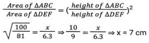 Geometry (Part-12)Total Questions: 5041. In triangle ABC, D is a point on BC such that BD : DC = 3 : 4. E is a point on AD such that AE : ED = 2 : 3. Find the ratio of area (∆ECD): area (ΔΑΕΒ). [SSC CGL 17/08/2021 (Evening)](a) 9 : 8(b) 1 : 2(c) 2 : 1(d) 8 : 9Correct Answer: (c) 2 : 1Solution:42. Point P lies outside a circle with centre O. Tangents PA and PB are drawn to meet the circle at A and B respectively. If ∠APB = 80°, then ∠OAB is equal to: [SSC CGL 18/08/2021 (Morning)](a) 140°(b) 40°(c) 70°(d) 35°Correct Answer: (b) 40°Solution:43. ΔABC~ ΔDEF If the areas of ΔABC and ΔDEF are 100 cm² and 81 cm², respectively and the altitude of ΔDEF is 6.3 cm, then the corresponding altitude (in cm) of ΔABC is: [SSC CGL 18/08/2021 (Morning)](a) 5.6(b) 9(c) 7(d) 8.4Correct Answer: (c) 7Solution:44. ∆ABC is an equilateral triangle. D is a point on side BC such that BD : BC = 1 : 3. If AD = 5√7cm, then the side of the triangle is: [SSC CGL 18/08/2021 (Afternoon)](a) 18cm(b) 12cm(c) 20cm(d) 15cmCorrect Answer: (d) 15cmSolution:45. In a trapezium PQRS, PQ is parallel to RS and diagonal PR and QS intersect at O. PQ = 4 cm, SR = 10cm, then what is area (∆POQ) : area (∆SOR)? [SSC CGL 18/08/2021 (Afternoon)](a) 4 : 25(b) 2 : 3(c) 4 : 9(d) 2 : 5Correct Answer: (a) 4 : 25Solution:46. A chord AB of circle C₁ of radius 17 cm touches circle C₂ which is concentric to C₁. The radius of C₂ is 8 cm. What is the length (in cm) of AB? [SSC CGL 18/08/2021 (Afternoon)](a) 30(b) 25(c) 20(d) 24Correct Answer: (a) 30Solution:47. In a right angled triangle ABC, the lengths of the sides containing the right angle are 5 cm and 12 cm respectively. A circle is inscribed in the triangle ABC. What is the radius of the circle (in cm)? [SSC CGL 18/08/2021 (Evening)](a) 2.8(b) 3(c) 2(d) 2.5Correct Answer: (c) 2Solution:48. Points A and B are on a circle with centre O. Point C is on the major arc АВ. If ∠OAC = 35° and ∠OBC = 45°, then what is the measure (in degrees) of the angle subtended by the minor arc AB at the centre? [SSC CGL 18/08/2021 (Evening)](a) 80(b) 70(c) 100(d) 160Correct Answer: (d) 160Solution:49. Triangle ABC is an equilateral triangle. D and E are points on AB and AC respectively such that DE is parallel to BC and is equal to half the length of BC. If AD + CE + BC = 30 cm, then find the perimeter (in cm) of the quadrilateral BCED. [SSC CGL 20/08/2021 (Morning)](a) 45(b) 25(c) 37.5(d) 35Correct Answer: (c) 37.5Solution:50. The angles of a triangle are in AP (arithmetic progression). If measure of the smallest angle is 50° less than that of the largest angle, then find the largest angle (in degrees) [SSC CGL 20/08/2021 (Afternoon)](a) 80(b) 85(c) 90(d) 75Correct Answer: (b) 85Solution:Submit Quiz« Previous12345