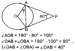 Geometry (Part-12)Total Questions: 5041. In triangle ABC, D is a point on BC such that BD : DC = 3 : 4. E is a point on AD such that AE : ED = 2 : 3. Find the ratio of area (∆ECD): area (ΔΑΕΒ). [SSC CGL 17/08/2021 (Evening)](a) 9 : 8(b) 1 : 2(c) 2 : 1(d) 8 : 9Correct Answer: (c) 2 : 1Solution:42. Point P lies outside a circle with centre O. Tangents PA and PB are drawn to meet the circle at A and B respectively. If ∠APB = 80°, then ∠OAB is equal to: [SSC CGL 18/08/2021 (Morning)](a) 140°(b) 40°(c) 70°(d) 35°Correct Answer: (b) 40°Solution:43. ΔABC~ ΔDEF If the areas of ΔABC and ΔDEF are 100 cm² and 81 cm², respectively and the altitude of ΔDEF is 6.3 cm, then the corresponding altitude (in cm) of ΔABC is: [SSC CGL 18/08/2021 (Morning)](a) 5.6(b) 9(c) 7(d) 8.4Correct Answer: (c) 7Solution:44. ∆ABC is an equilateral triangle. D is a point on side BC such that BD : BC = 1 : 3. If AD = 5√7cm, then the side of the triangle is: [SSC CGL 18/08/2021 (Afternoon)](a) 18cm(b) 12cm(c) 20cm(d) 15cmCorrect Answer: (d) 15cmSolution:45. In a trapezium PQRS, PQ is parallel to RS and diagonal PR and QS intersect at O. PQ = 4 cm, SR = 10cm, then what is area (∆POQ) : area (∆SOR)? [SSC CGL 18/08/2021 (Afternoon)](a) 4 : 25(b) 2 : 3(c) 4 : 9(d) 2 : 5Correct Answer: (a) 4 : 25Solution:46. A chord AB of circle C₁ of radius 17 cm touches circle C₂ which is concentric to C₁. The radius of C₂ is 8 cm. What is the length (in cm) of AB? [SSC CGL 18/08/2021 (Afternoon)](a) 30(b) 25(c) 20(d) 24Correct Answer: (a) 30Solution:47. In a right angled triangle ABC, the lengths of the sides containing the right angle are 5 cm and 12 cm respectively. A circle is inscribed in the triangle ABC. What is the radius of the circle (in cm)? [SSC CGL 18/08/2021 (Evening)](a) 2.8(b) 3(c) 2(d) 2.5Correct Answer: (c) 2Solution:48. Points A and B are on a circle with centre O. Point C is on the major arc АВ. If ∠OAC = 35° and ∠OBC = 45°, then what is the measure (in degrees) of the angle subtended by the minor arc AB at the centre? [SSC CGL 18/08/2021 (Evening)](a) 80(b) 70(c) 100(d) 160Correct Answer: (d) 160Solution:49. Triangle ABC is an equilateral triangle. D and E are points on AB and AC respectively such that DE is parallel to BC and is equal to half the length of BC. If AD + CE + BC = 30 cm, then find the perimeter (in cm) of the quadrilateral BCED. [SSC CGL 20/08/2021 (Morning)](a) 45(b) 25(c) 37.5(d) 35Correct Answer: (c) 37.5Solution:50. The angles of a triangle are in AP (arithmetic progression). If measure of the smallest angle is 50° less than that of the largest angle, then find the largest angle (in degrees) [SSC CGL 20/08/2021 (Afternoon)](a) 80(b) 85(c) 90(d) 75Correct Answer: (b) 85Solution:Submit Quiz« Previous12345